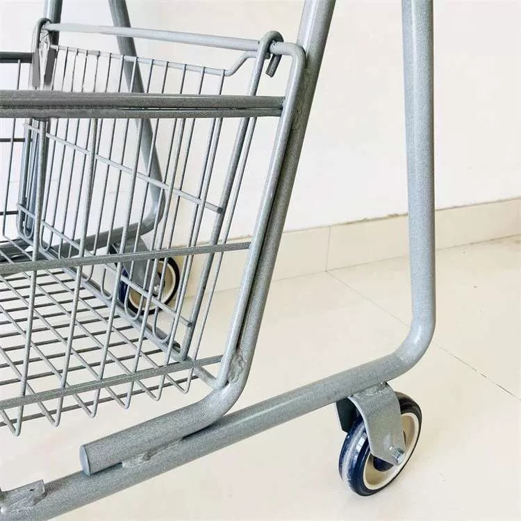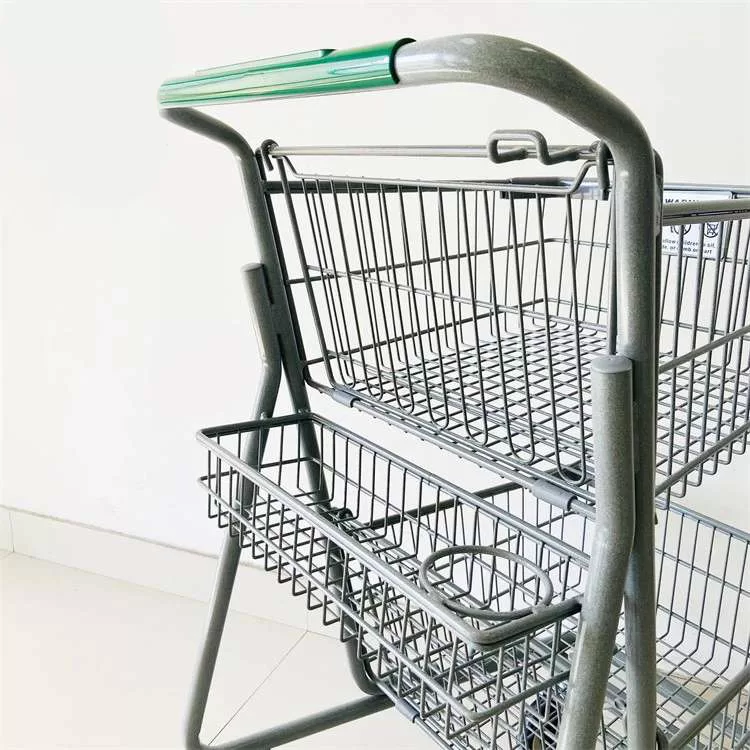 2-Tier powder coating metal shopping cart with three baskets for convenience store and supermarket